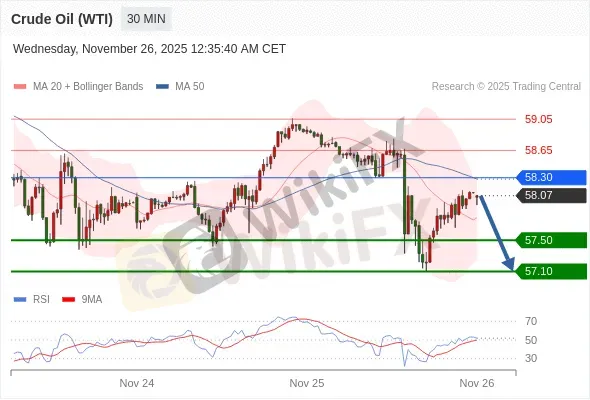 在 58.30 之下,看跌,目标价位为 57.50 ,然后为 57.10 。