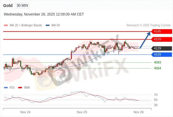 在 4109 之上,看涨,目标价位为 4159 ,然后为 4185 。