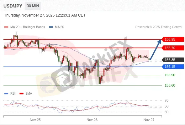 在 156.15 之上,看涨,目标价位为 156.70 ,然后为 156.95 。
