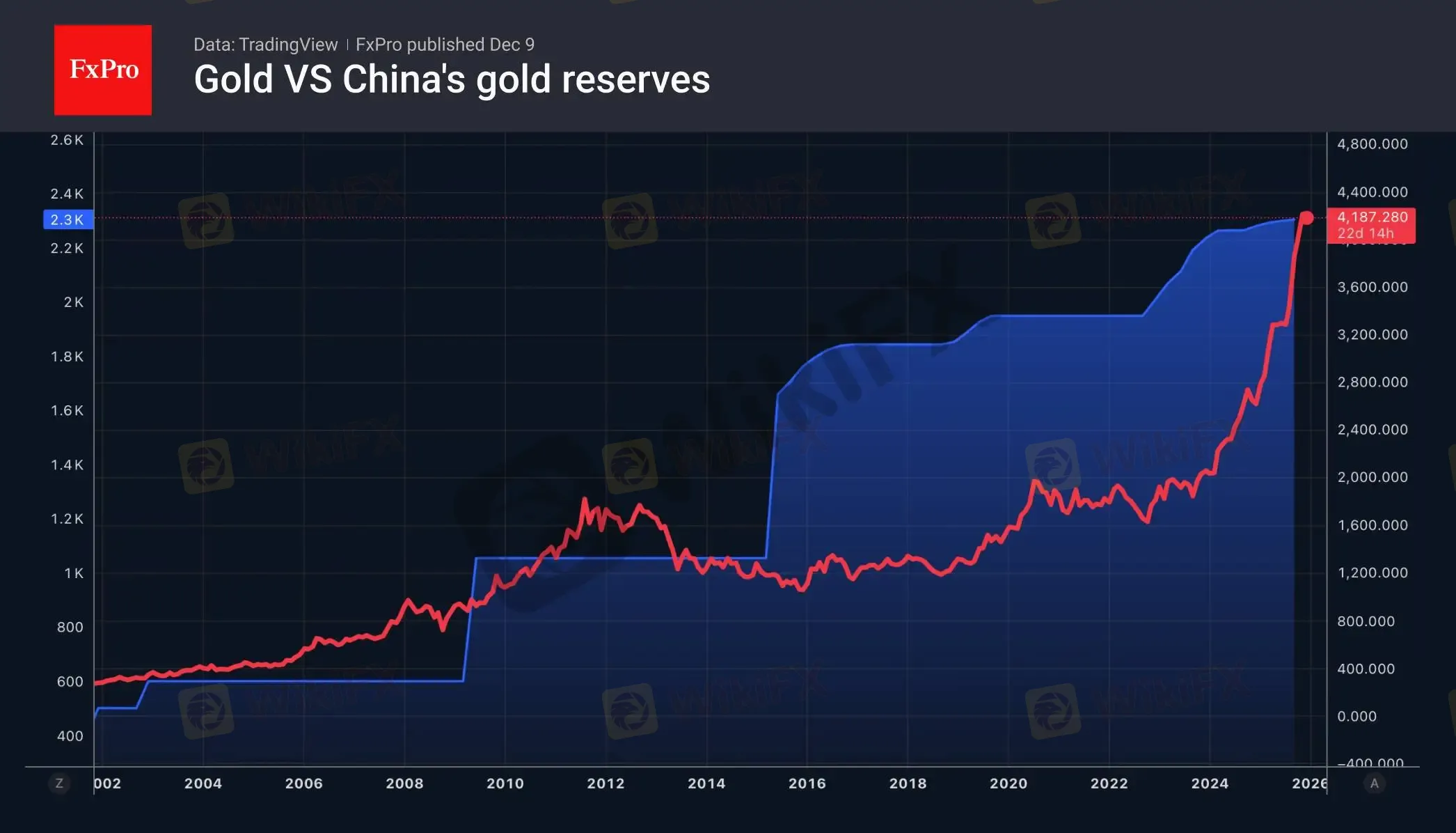 中国人民银行已连续第 13 个月增加贵金属储备。11 月该行增持 3 万盎司黄金,使得总储备量达到 7412 万盎司。这一轮不间断的购金周期始于 2024 年 11 月,是外汇储备多元化与去美元化战略的一部分。不过,乌克兰和平谈判的推进可能会放缓甚至逆转这些进程,给黄金市场带来下行压力。