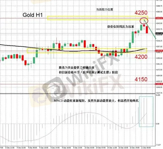 l 价格曾冲上4250,但迅速遭到压回 → 显示该价位短线压力沉重。