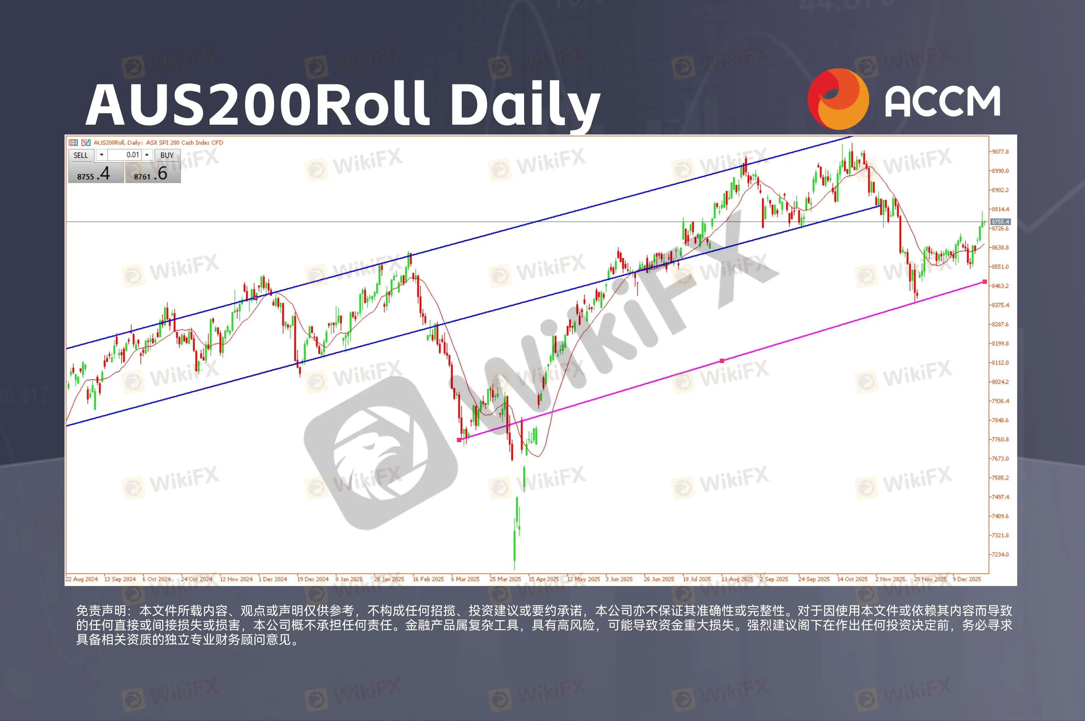 从技术面来看,一条次级支撑趋势线仍然完好,目前支撑位大致位于8,500点区间。上周,AUS200Roll正是在这一水平附近获得支撑后,反弹至8,700点一线。