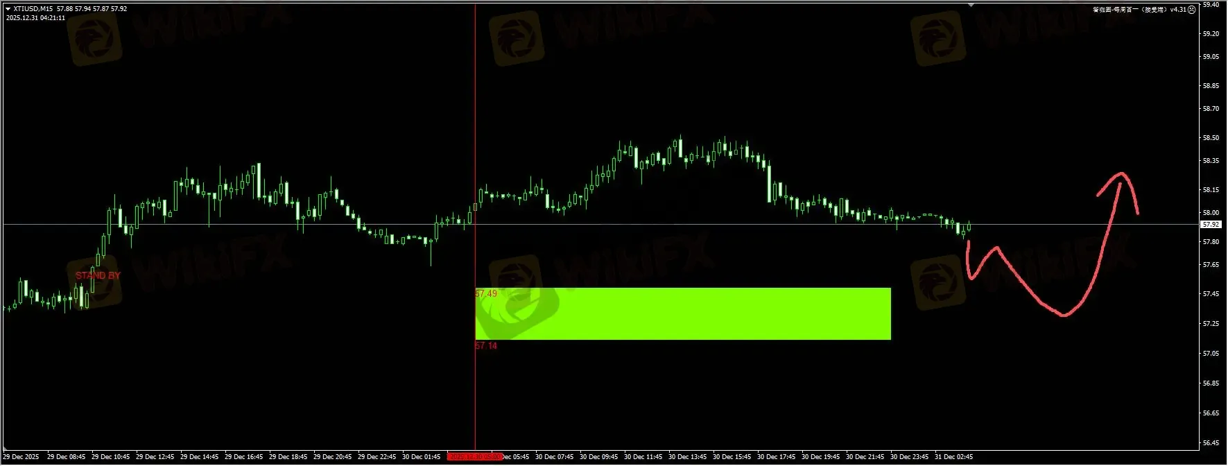 黄金:昨天我们插件给到了蓝色区域的buy stop提醒,盘整一度完成接近2倍的盈亏比收益。今天早盘价格回踩之后目前重新企稳,日内应当继续捕捉反弹信号。同时,因为元旦假期降至,如果再发生大幅下跌的情况,建议观望等待。详细位置请咨询插件。