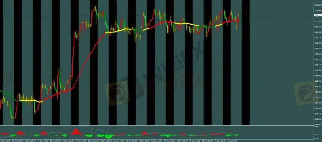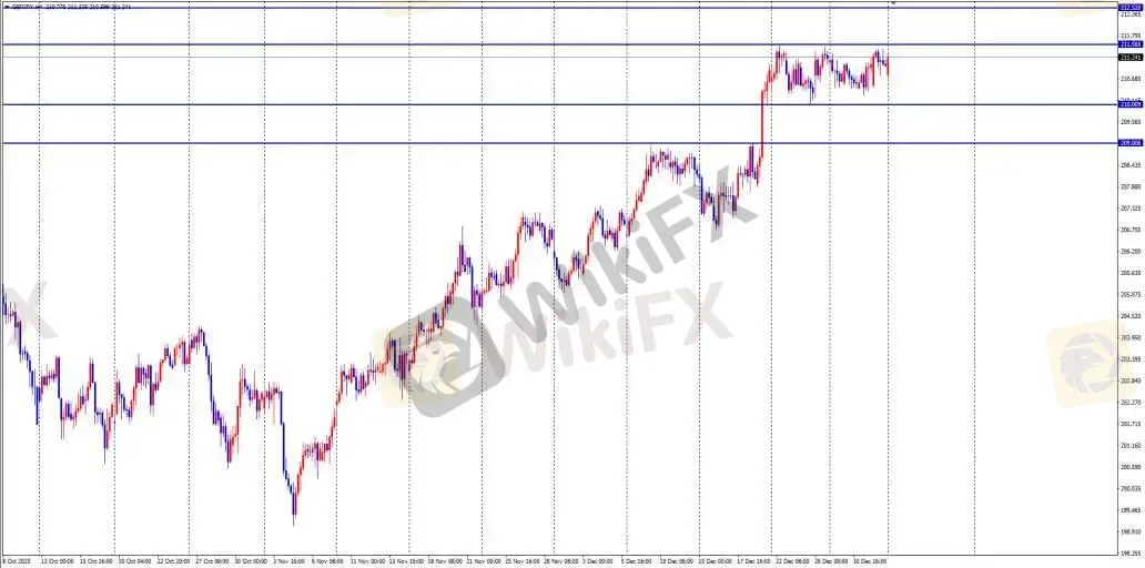 - 操作建议: 回调至 210.8 或 210.5 附近做多,止盈 40‑60 点,止损 210.2 附近。