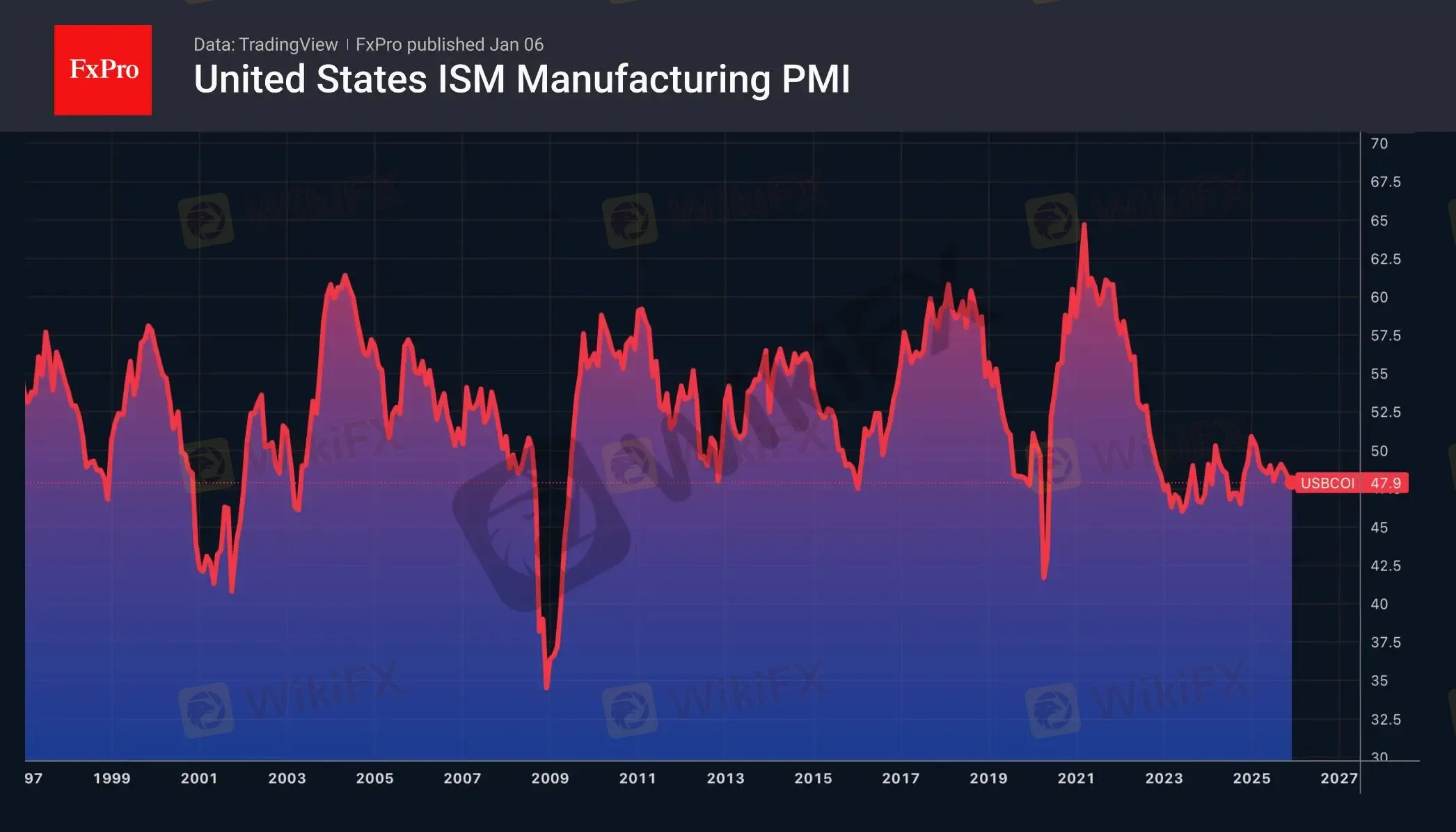 美元指数受疲弱采购经理人指数数据和美联储官员鸽派表态因素而承压。明尼阿波利斯联储主席尼尔・卡什卡里(Neel Kashkari)称,通胀可能持续放缓、失业率或将上升。种种迹象显示,新一轮货币宽松或很快到来。值得注意的是,美国制造业 12 月景气指数从 48.2 跌至 47.9,已连续 10 个月低于 50,意味着制造业正陷入萎靡状态。