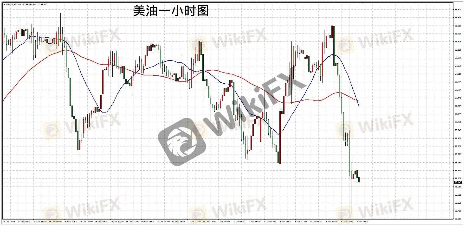 美油一小时图,走势冲高后向下回落,并刷新近期低点,趋势上较为偏空;不过近期多空换手快速,波动欠缺规律,短线不易介入操作,故建议可先观望。