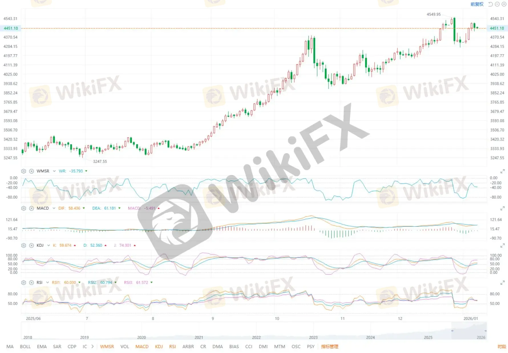 1 月 8 日(周四)亚市早盘,现货黄金震荡微涨,目前交投于 4460 美元/盎司附近。