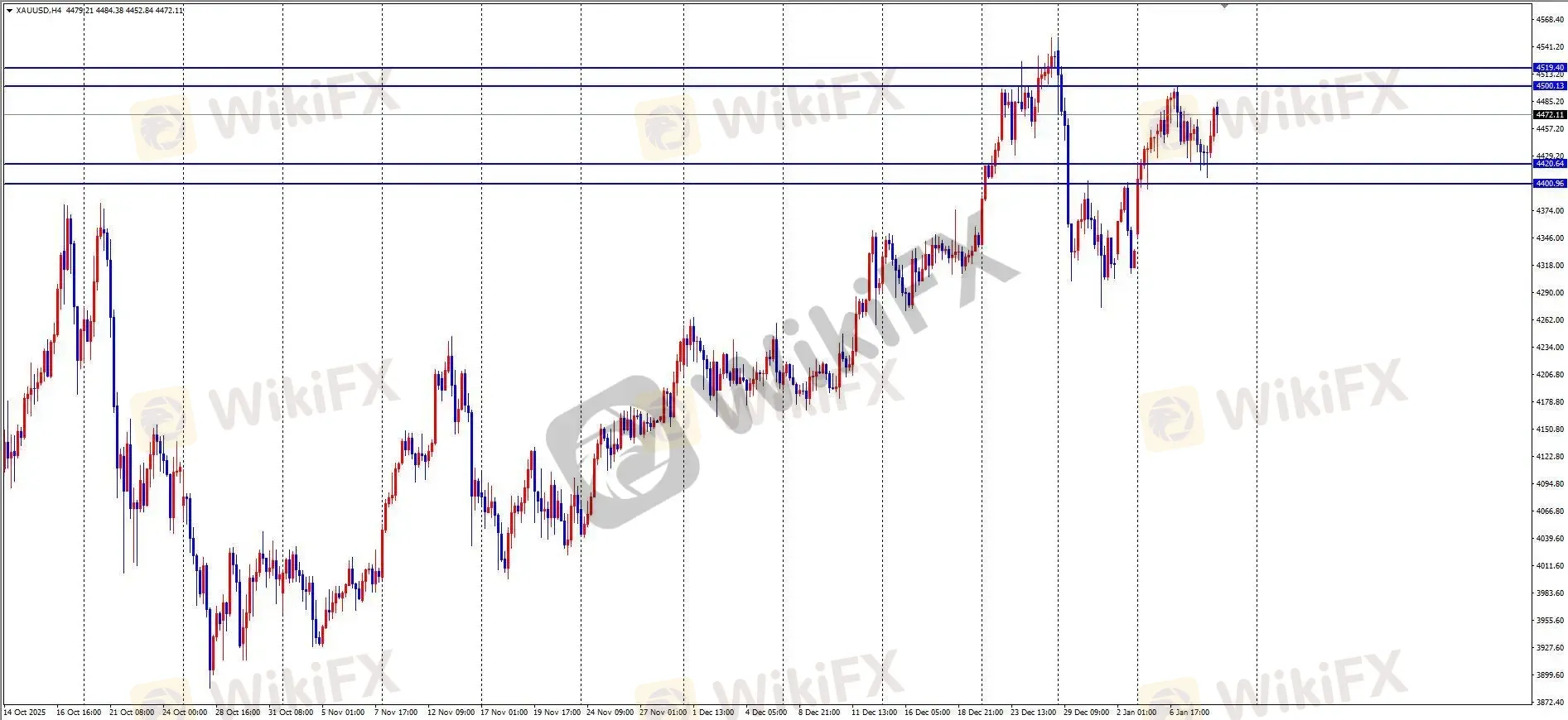 摘要:XAU/USD昨日回顾与ETO Markets观点周四,黄金亚盘跳空高开后震荡下行,下破前日低点至 4415 附近。欧盘于低位横盘企稳,美盘小幅下探后加速上行,创日内新高至 4480 附近,全日波幅约 722 点,日线收带长下影阳线。金价在 4400 关口附近强势反弹,显示多头力量仍存,但价格尚未突破上方关键区间,整体维持宽幅震荡格局。当前区间支撑关注 4440 、 4416 及 4405 一带。