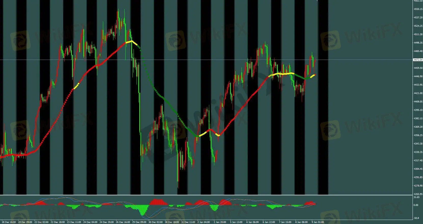 目前 H1 三色线已由黄转红,建议等待价格回踩三色线附近后,伺机布局 H1 标准多单,盈利目标约 150 - 200 点,保护性止损可设于开仓位下方 250 点或三色线转绿时离场。日内短线可结合 M5 基础模型灵活操作。