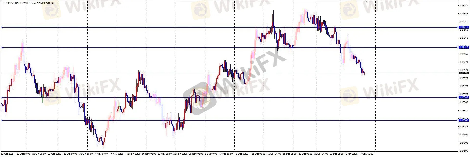 周四欧元区数据表现不一:11 月失业率自 6.4% 降至 6.3% ,劳动力市场展现韧性;但 12 月经济景气指数回落至 96.7 ,消费者信心持续低迷。美国初请失业金人数 20.8 万,略高于前值,三季度劳动力生产率增速创两年来新高,反映工资通胀压力有所缓和。欧美全天窄幅震荡下行,最低至 1.1642 附近,波幅约 40 点,日线收小阴线。ETO Markets 认为,汇价整体承压,日内仍以震荡偏空为主。