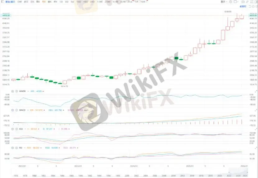 据 ETO Markets 市场监测显示,1 月 8 日(周四),现货黄金早盘下探后迅速反弹,盘中一度触及 4407.73 美元/盎司的日内低点,随后买盘回流,最终收于 4477.28 美元/盎司附近,单日上涨约 0.5%,走势体现出高位震荡中的多空拉锯。