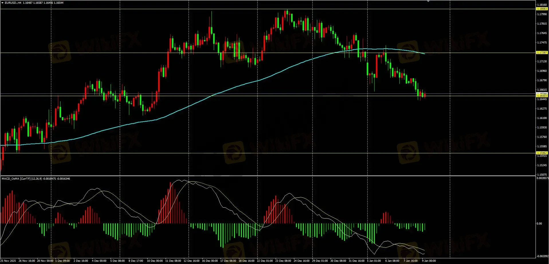 下方支撑:1.16500,1.16250,1.16000,1.15720,1.15460,1.15200。