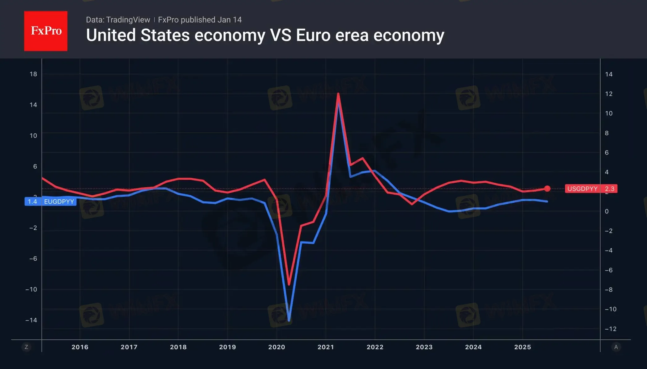 然而,我们不得不对中期选举宣传做出调整。美国通胀率虽已降至2.6%-2.7%,但仍显著高于2%的目标水平。GDP增长表现抢眼,但劳动力市场降温正促使美联储在2025年将利率从4.5%下调至3.75%。当前,联邦公开市场委员会(FOMC)官员认为货币政策已处于合适位置,他们打算维持本轮政策暂停周期,这为美元提供了支撑。