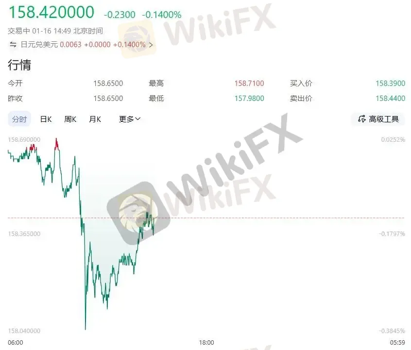 消息一出,美元兑日元从160附近回落至158.37左右。