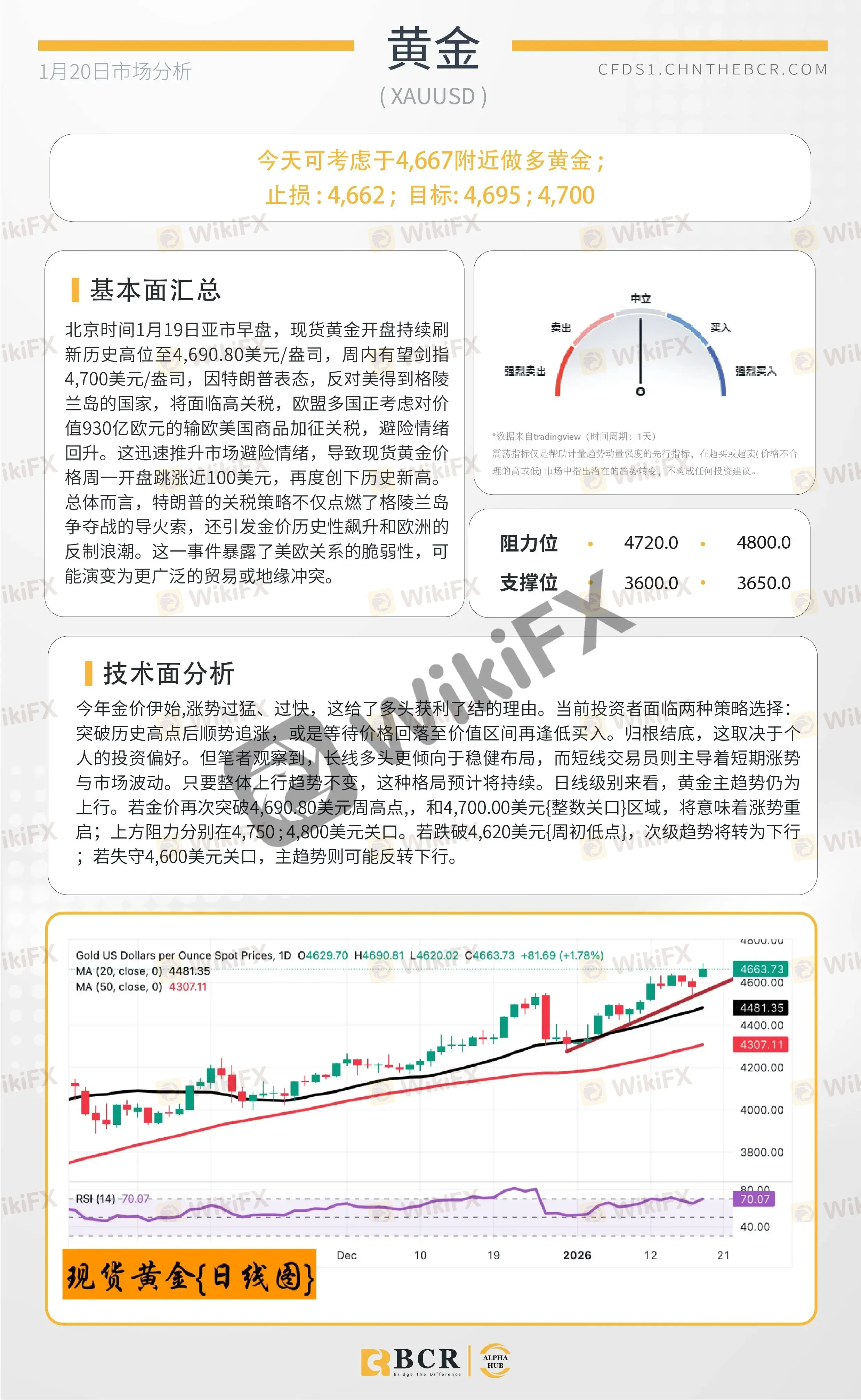 BCR每日早评及分析 - 2026年1月20日