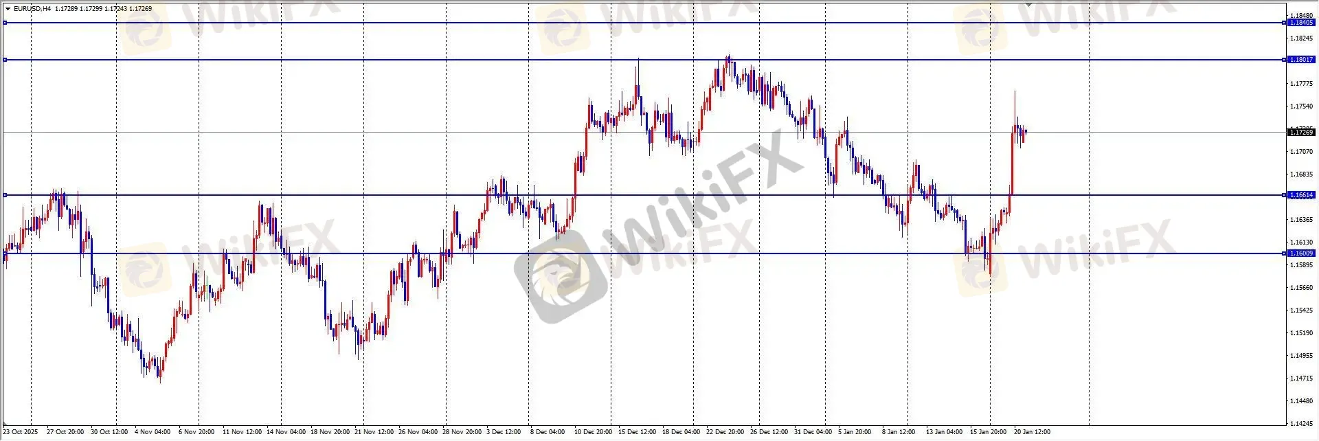 周二,欧元兑美元延续上涨,全天波幅约 137 点,日线收出带上下影线的大阳线。ETO Markets 此前提示关注欧美贸易关系紧张及“抛售美元”交易模式对汇价的支撑。价格上行至 1.177 附近后进入整理,多头动能仍存。