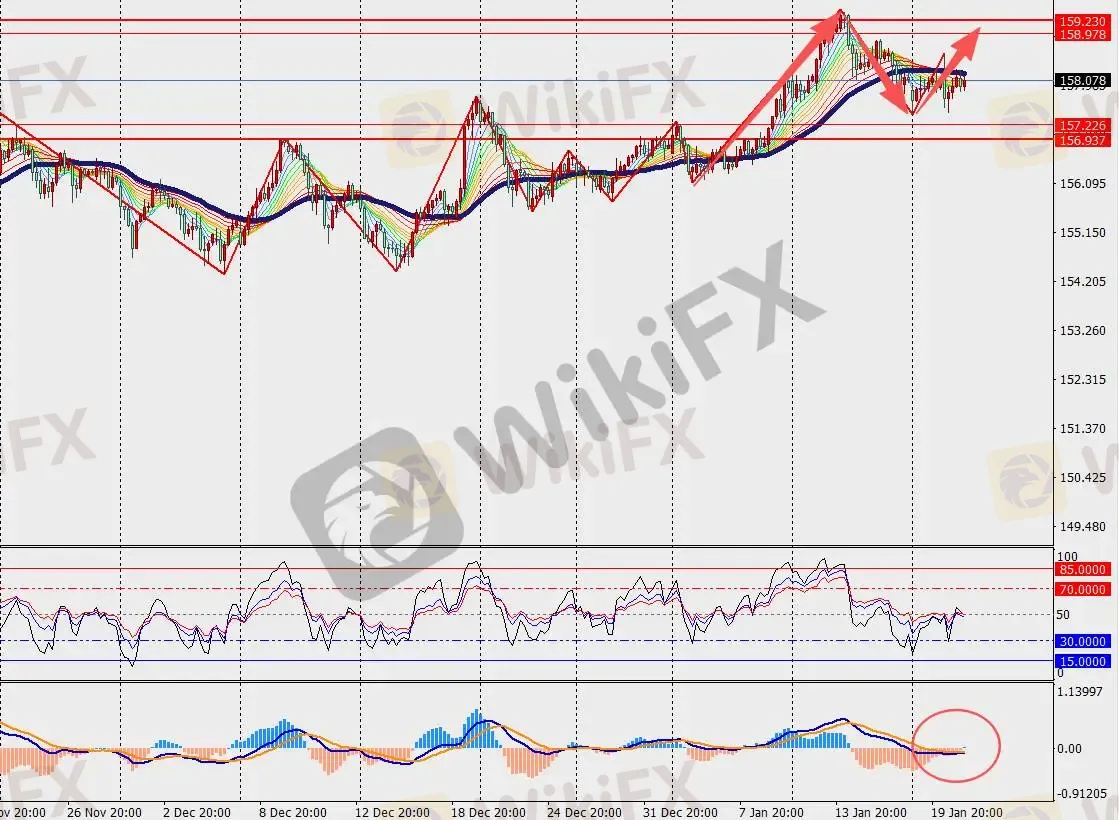 技术面: 欧元兑美元H4级别遇阻回调,并依旧在48日多空分界线上方运行。另一方面,MACD双线与量能柱在零轴附近缩量。欧元区公布的12月通胀报告中,关键数据是核心通胀年率,目前该数据仍保持在2%的目标之上。