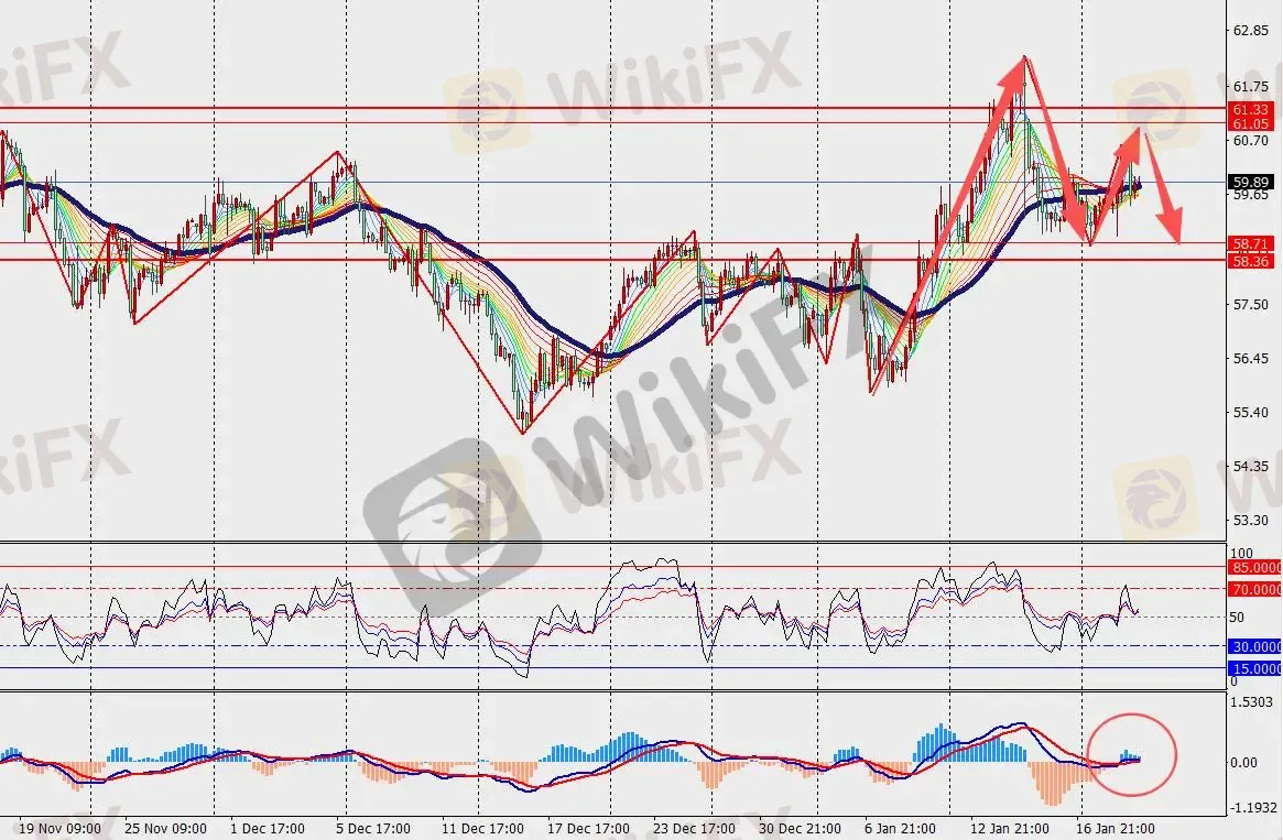 技术面:原油H4级别震荡回落,并在48日多空分界线附近运行。此外,MACD双线和量能柱在零轴附近缩量。技术面显示,美原油仍处于震荡偏弱结构中,中期下行风险尚未完全解除。