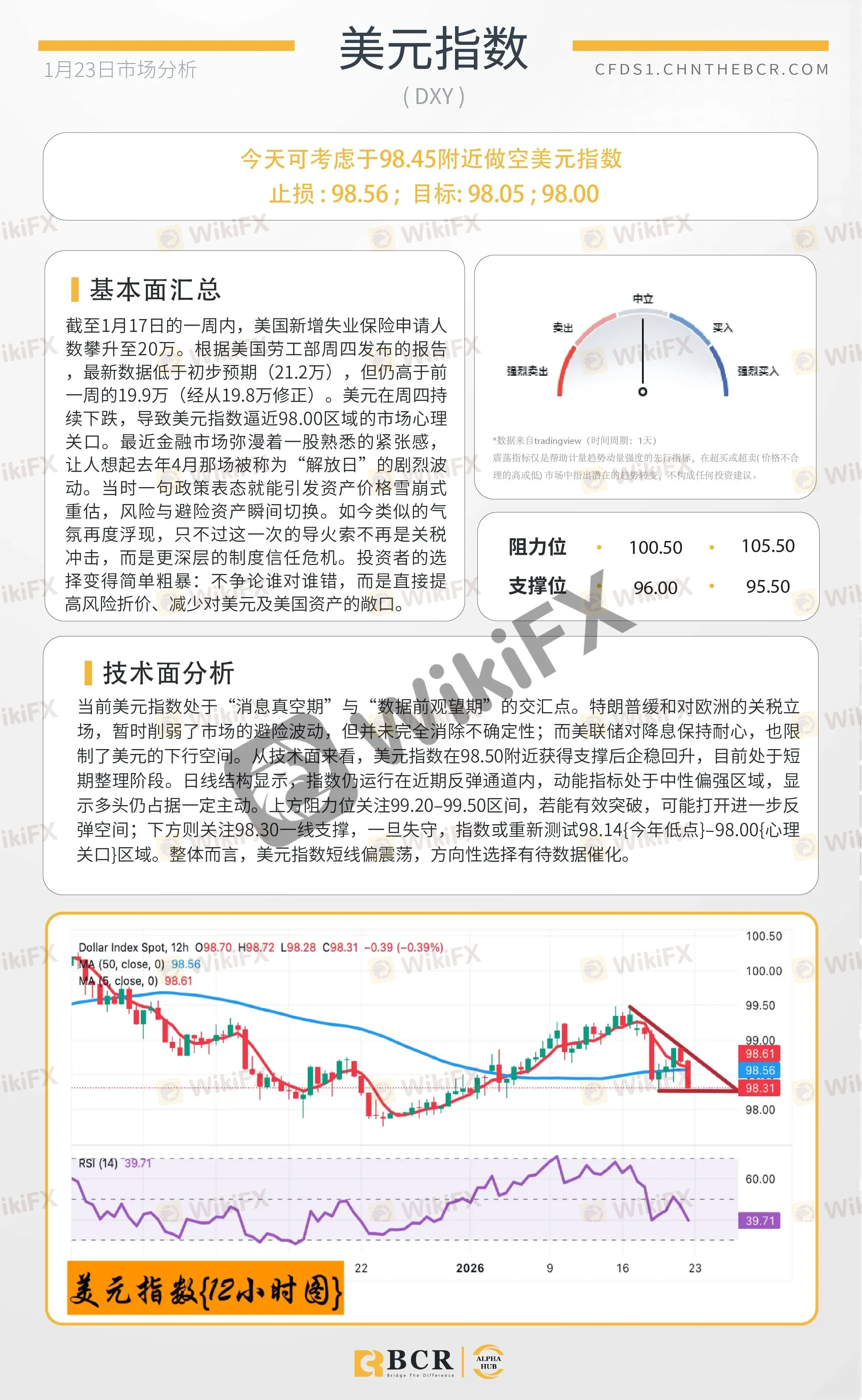 BCR每日早评及分析 - 2026年1月23日