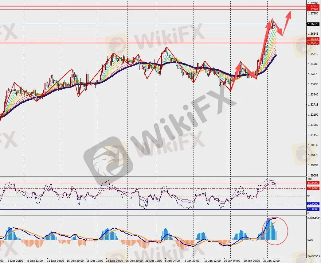 第一阻力位:1.3740 第一支撑位:1.3630