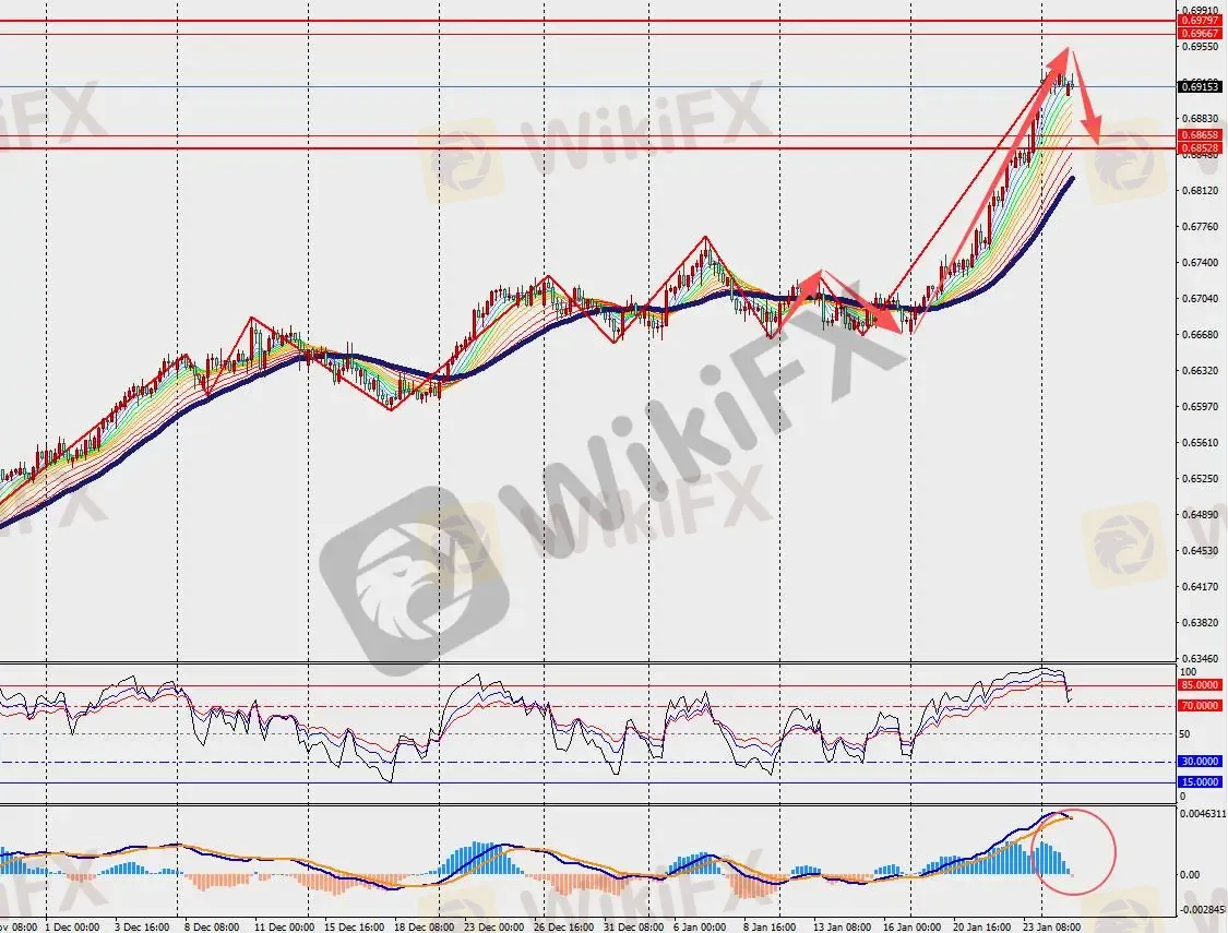第一阻力位:0.6960 第一支撑位:0.6870