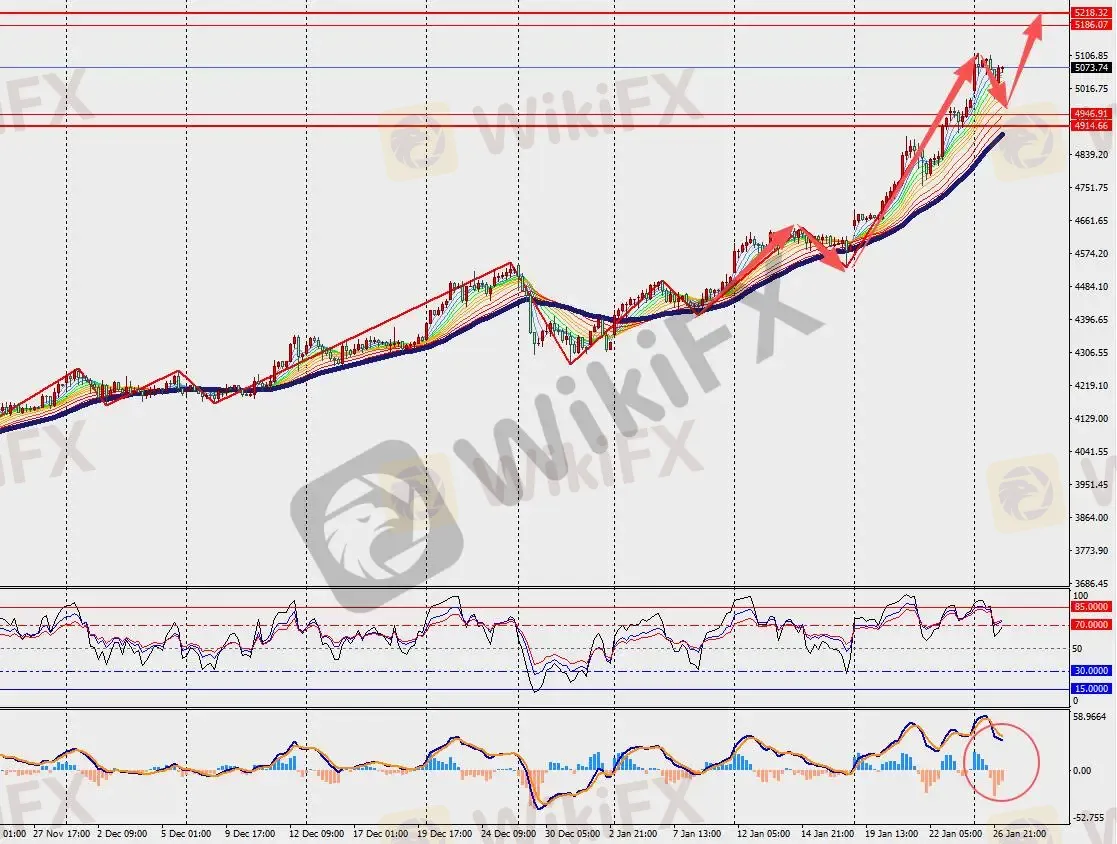 第一阻力位:5090.00 第一支撑位:5055.00
