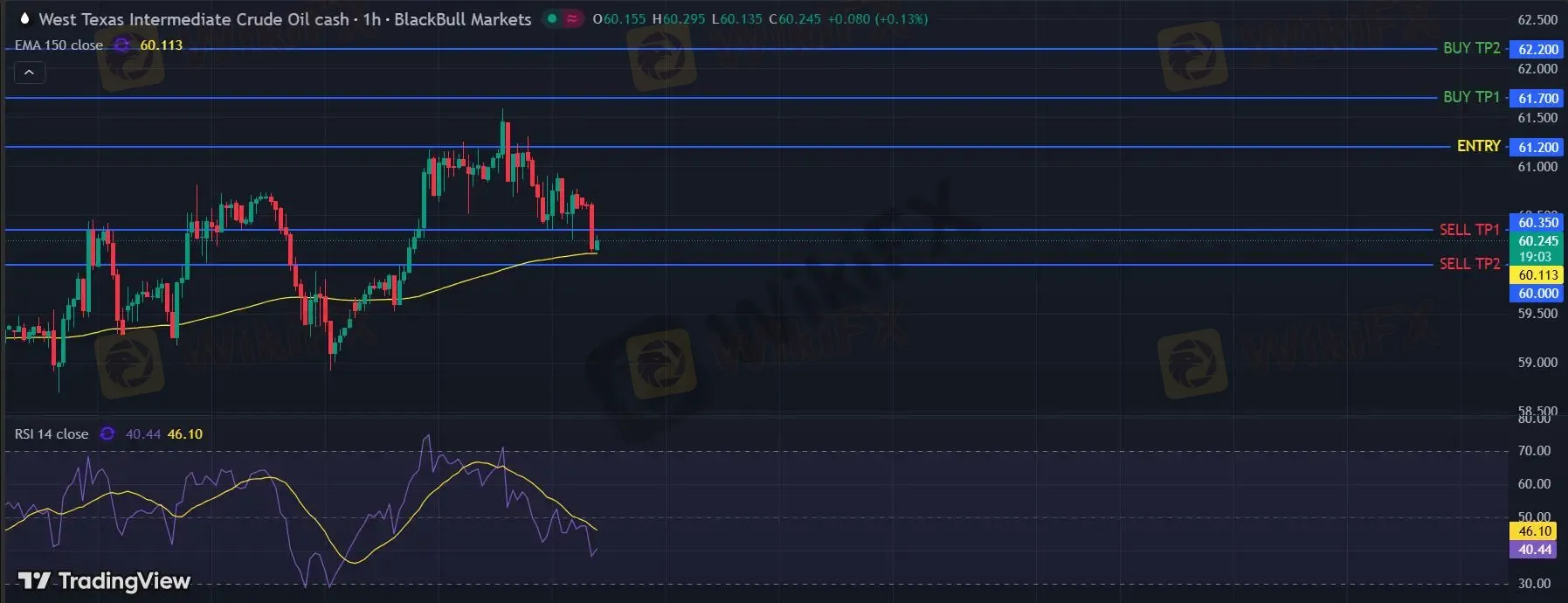 在 61.20 之下,看跌,目标价位为 60.35 ,然后为 60.00 。