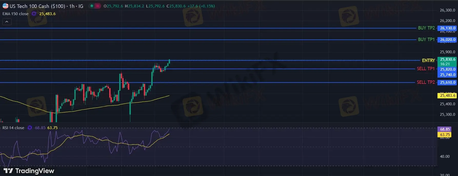 在 25820 之上,看涨,目标价位为 26020 ,然后为 26130 。