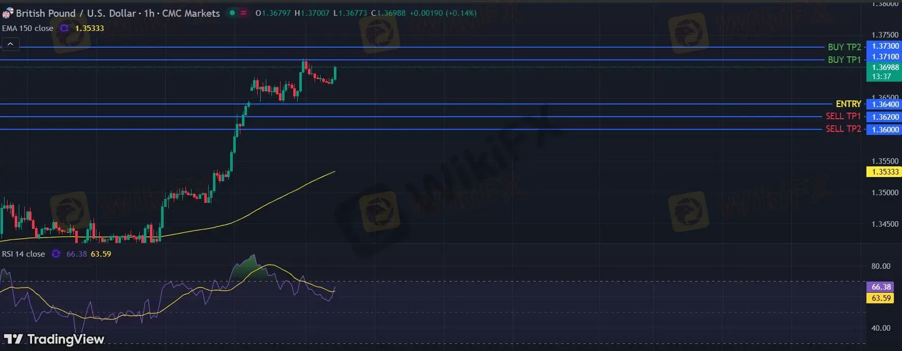 在 1.3640 下,看空,目标价位定在 1.3620 ,然后为 1.3600。