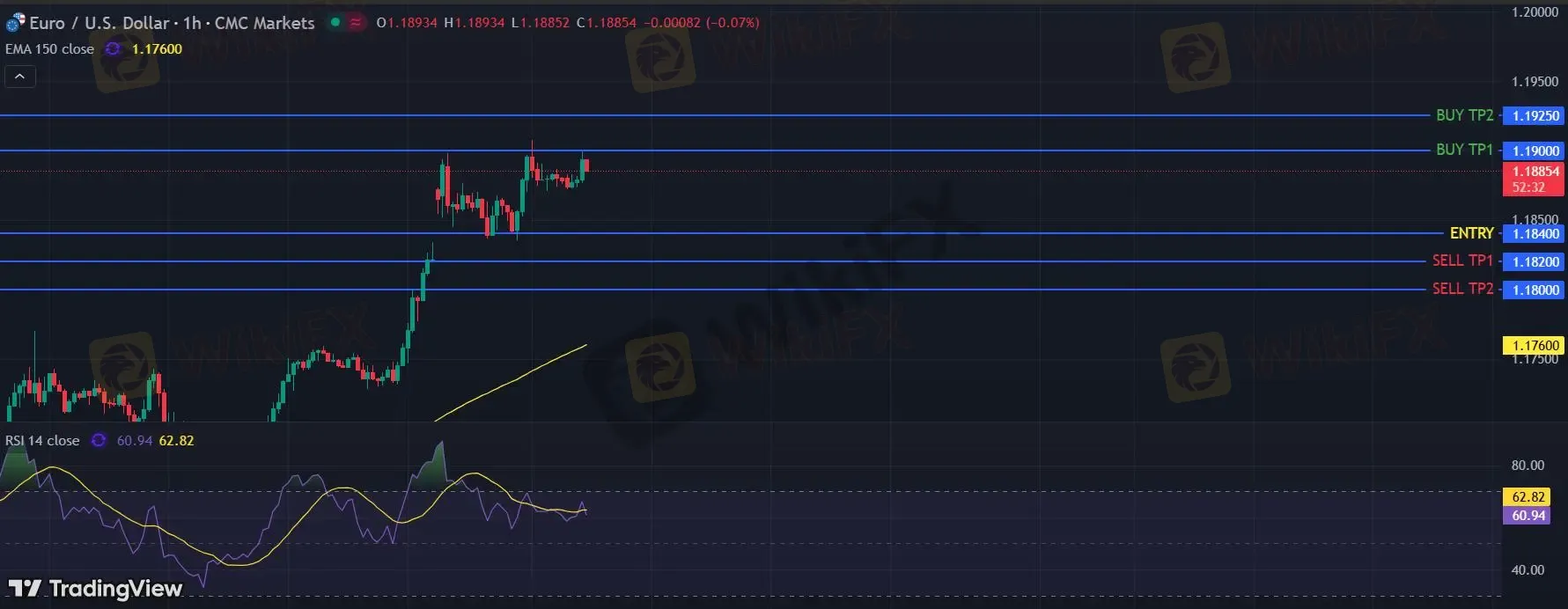 在 1.1840 下,看空,目标价位定在 1.1820 ,然后为 1.1800。
