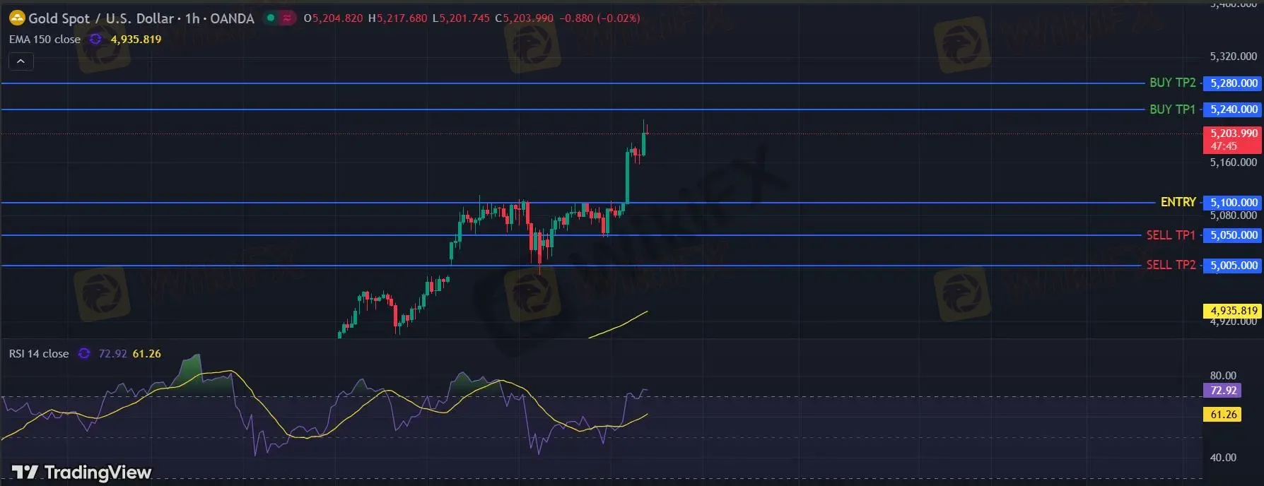 摘要:各位交易者好,今天是2026年1月28日(周三),以下是NAGM为您带来的每日市场评论。黄金黄金现货 当日内: 新一轮上升。转折点:5100交易策略:在 5100 之上,看涨,目标价位为 5240 ,然后为 5280 。备选策略:在 5100 下,看空,目标价位定在 5050 ,然后为 5005。技术点评:RSI技术指标向上运行。美国原油 (WTI)美国原油 (WTI) 期货 (H6) 当日