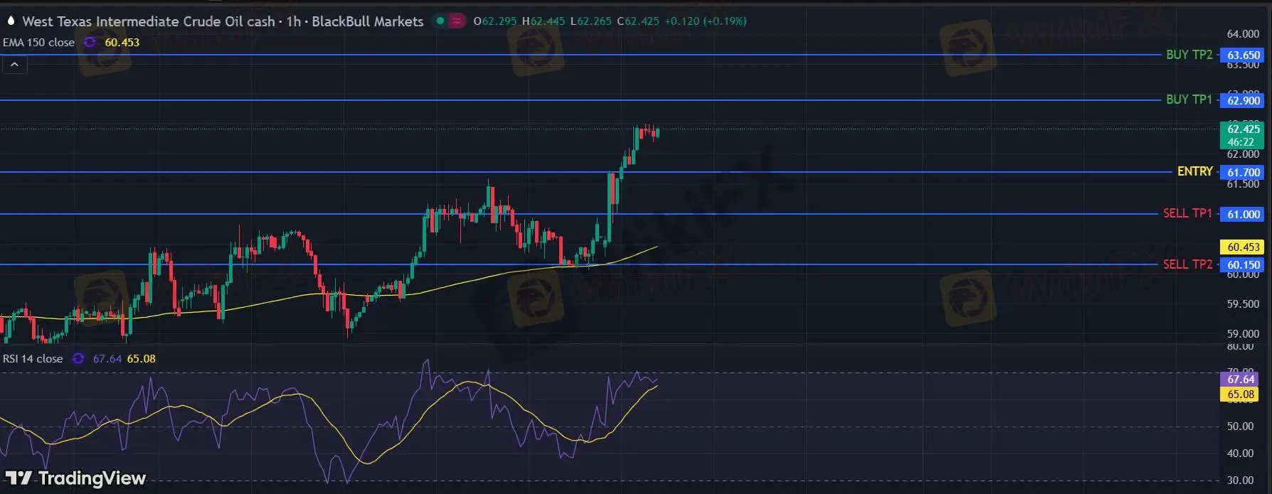 美国原油 (WTI) 期货 (H6) 当日内: 目标位为63.65。
