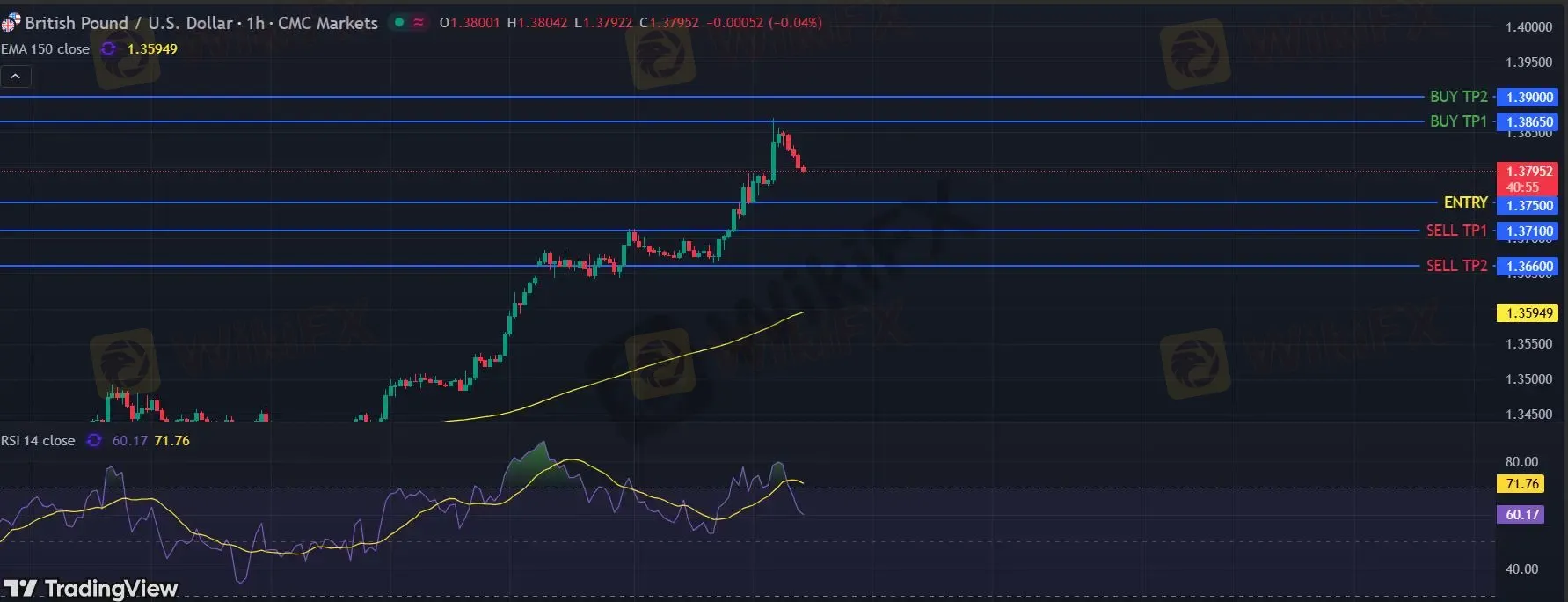 在 1.3750 下,看空,目标价位定在 1.3710 ,然后为 1.3660。