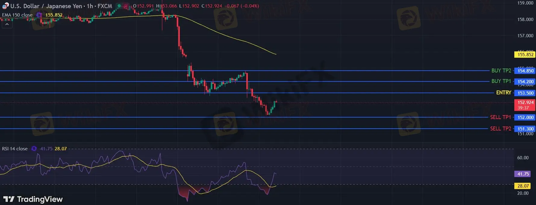 在 153.50 之下,看跌,目标价位为 152.00 ,然后为 151.30 。