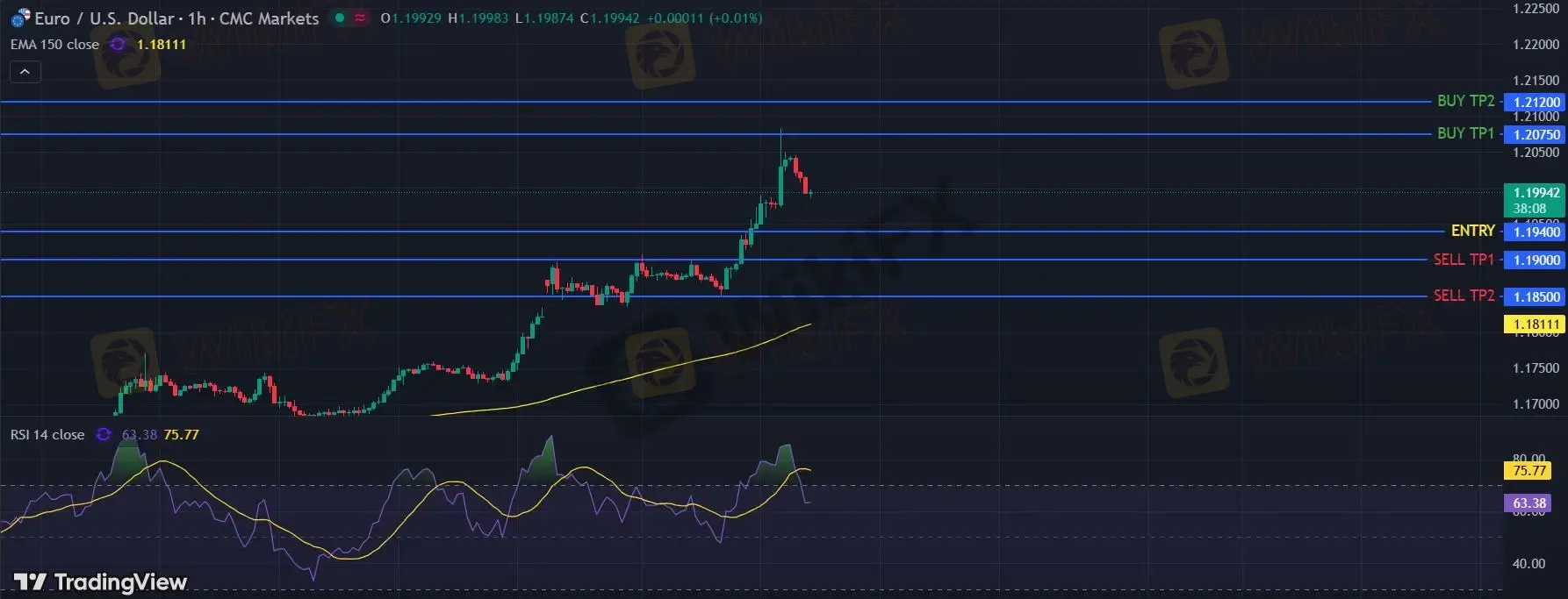 在 1.1940 下,看空,目标价位定在 1.1900 ,然后为 1.1850。