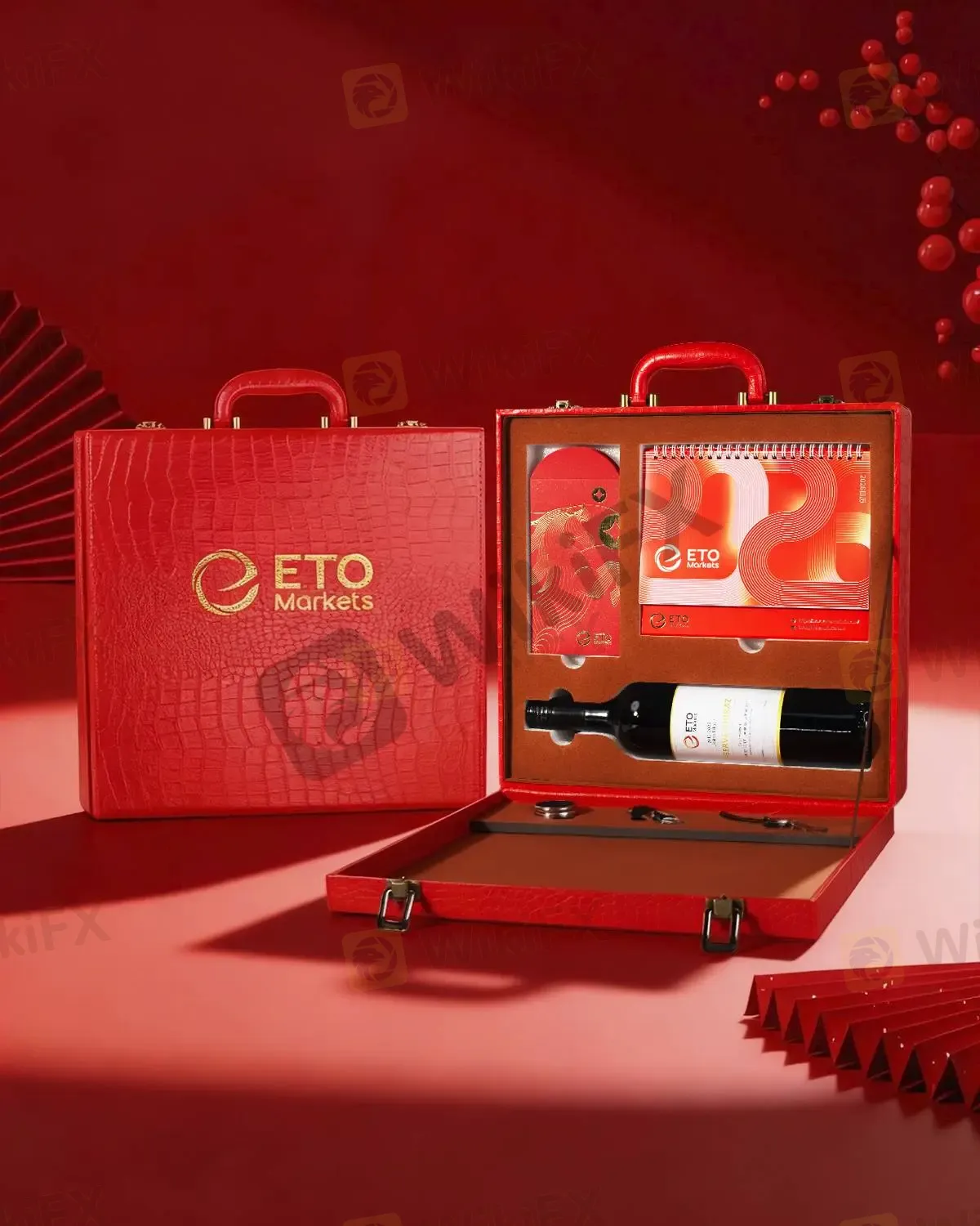 礼盒以热烈红色为基调,覆以典雅红色鳄纹皮质,触感沉稳厚重。烫金骏马标识如骏马蹄金印,熠熠生辉,光芒谦逊而坚定。开启之瞬,宛若骏马昂首启程,寓意着 ETO Markets 与您并肩前行、共拓马年新程。