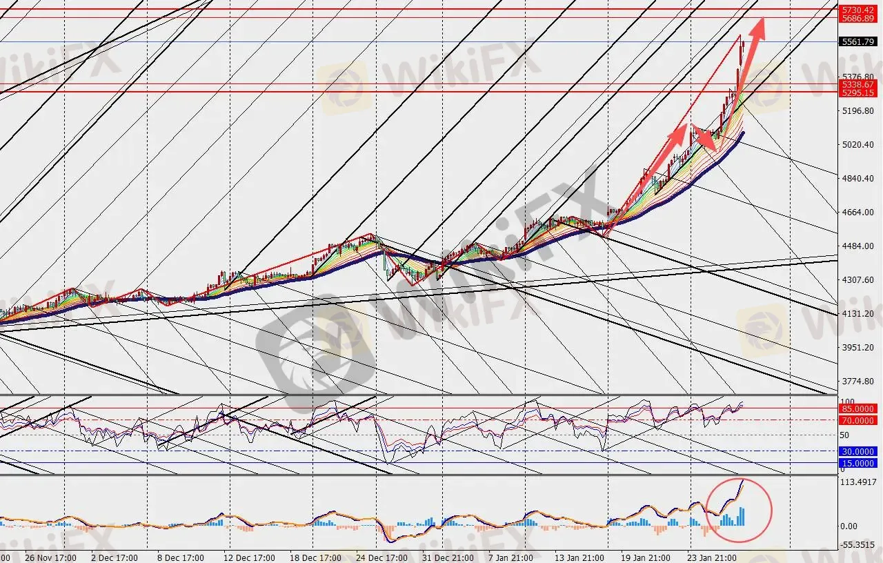 黄金H4级别站稳5500美元大关,主要是由结构性需求转变支撑的成熟牛市的体现,而非短期投机行为催生的行情。这一格局意味着,即便后续市场出现波动,黄金也将持续获得稳固支撑。