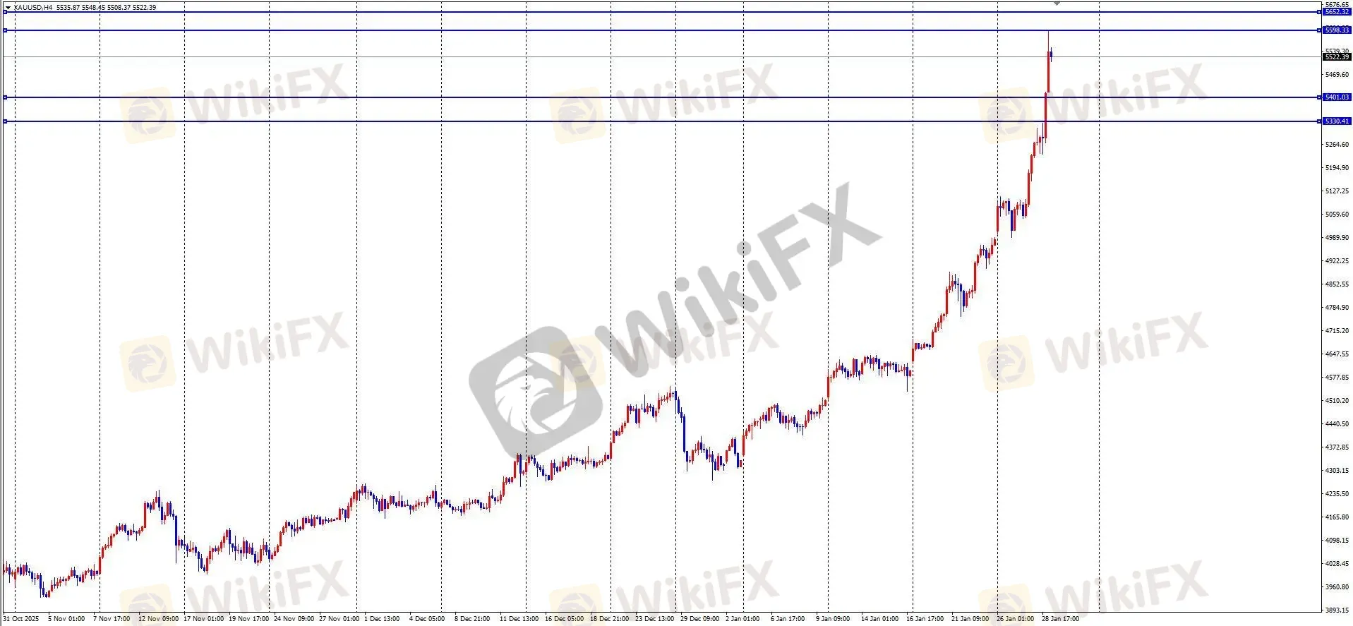 周三,黄金在亚盘小幅回调后企稳回升,欧盘最高触及 5312 附近后受阻震荡。美盘时段受美联储主席鲍威尔讲话影响,价格加速上行并突破 5400 关口,日线收出光头大阳线,全天最大波幅约 2620 点,多头动能强劲。早盘行情再度冲高至 5600 附近后快速回撤至 5445 并企稳,该位置形成短期支撑。ETO Markets 提醒,临近月线收官,需警惕多头获利了结所可能引发的回调风险,由于当前波动剧烈,今日建议以观望为主。