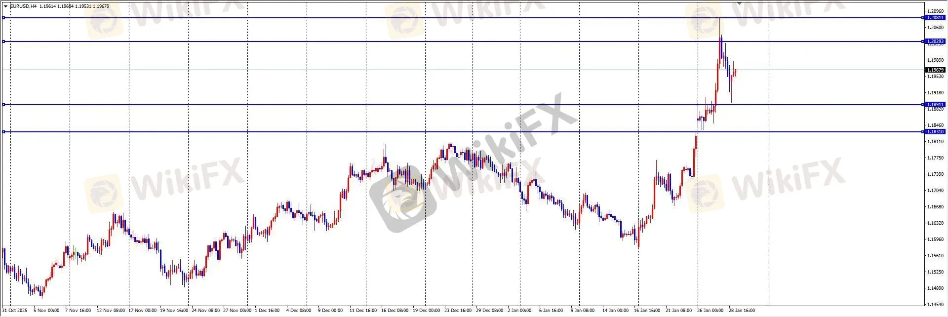 周三欧元兑美元四年来首次升破 1.2000 关口,但随后自高位回落,最低触及 1.1895 后反弹整理,全日波幅约 147 点。欧洲央行官员近期对欧元升值影响通胀表示关注,美联储则维持利率不变,政策声明未给出明确降息线索。ETO Markets 认为,汇价目前于趋势线附近震荡,后市需关注欧洲政策动向。