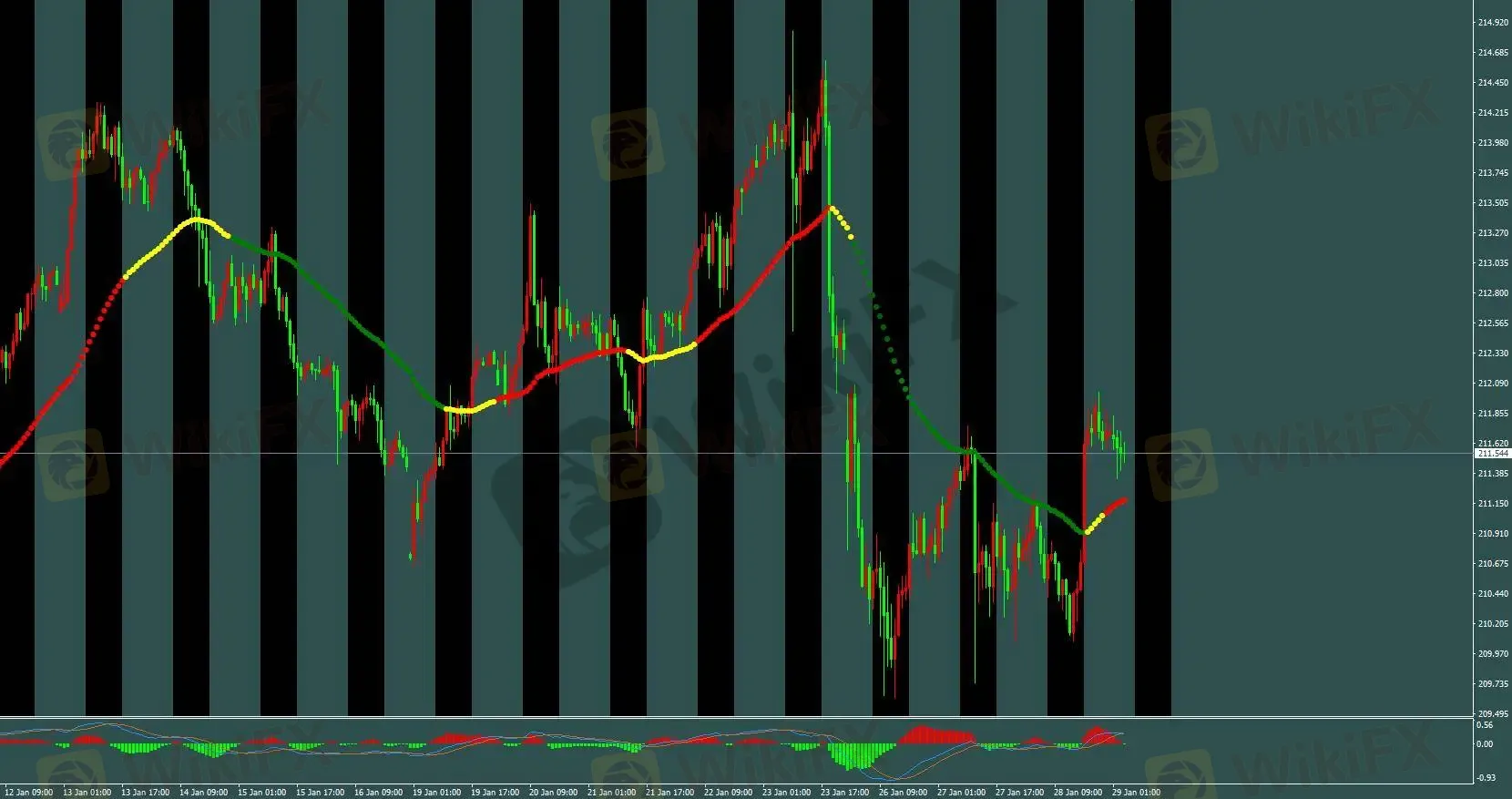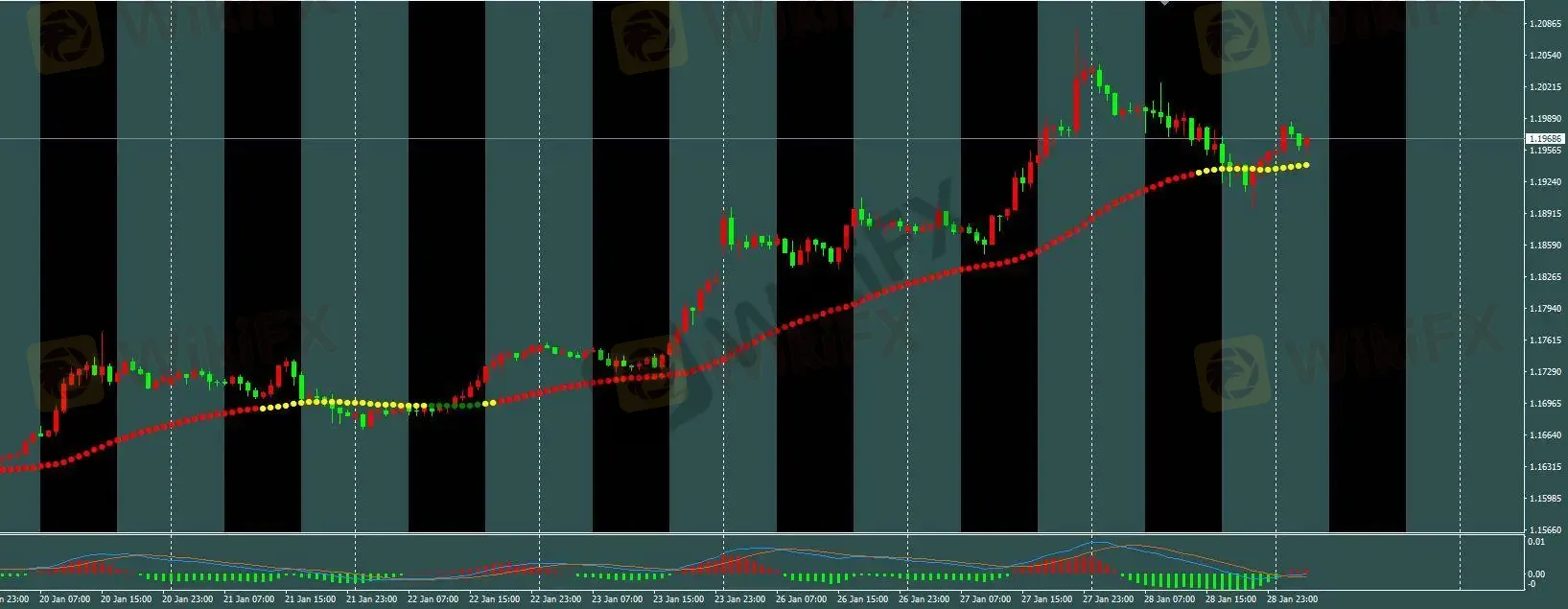 H1 趋势线已由红转黄,前期多单于 1.1728 入场并达成止盈。今日可参考 M5 综合模型进行短线交易。