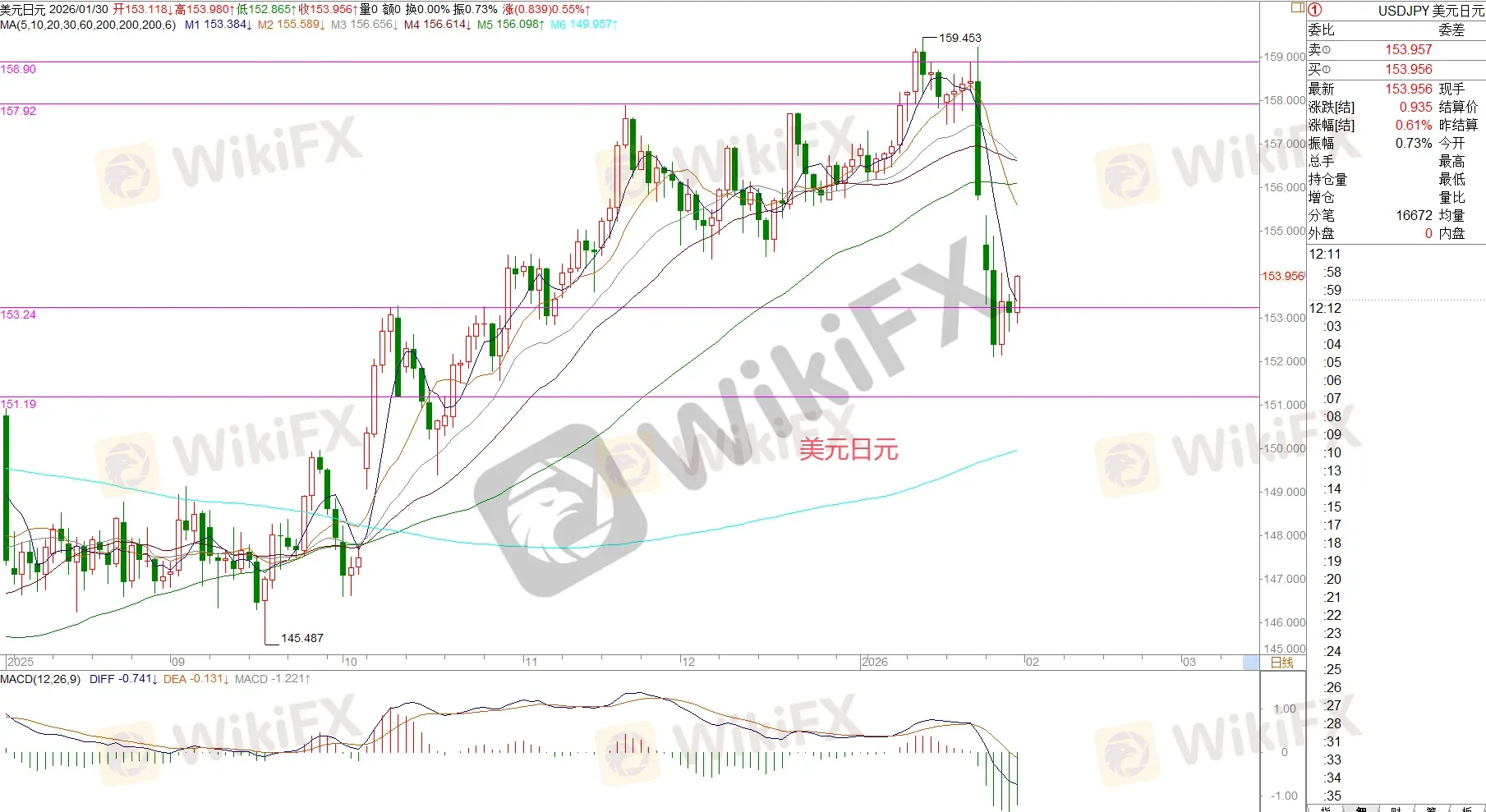 压制位:154.25-154.65-154.90-155.15-155.40-155.80-157.30