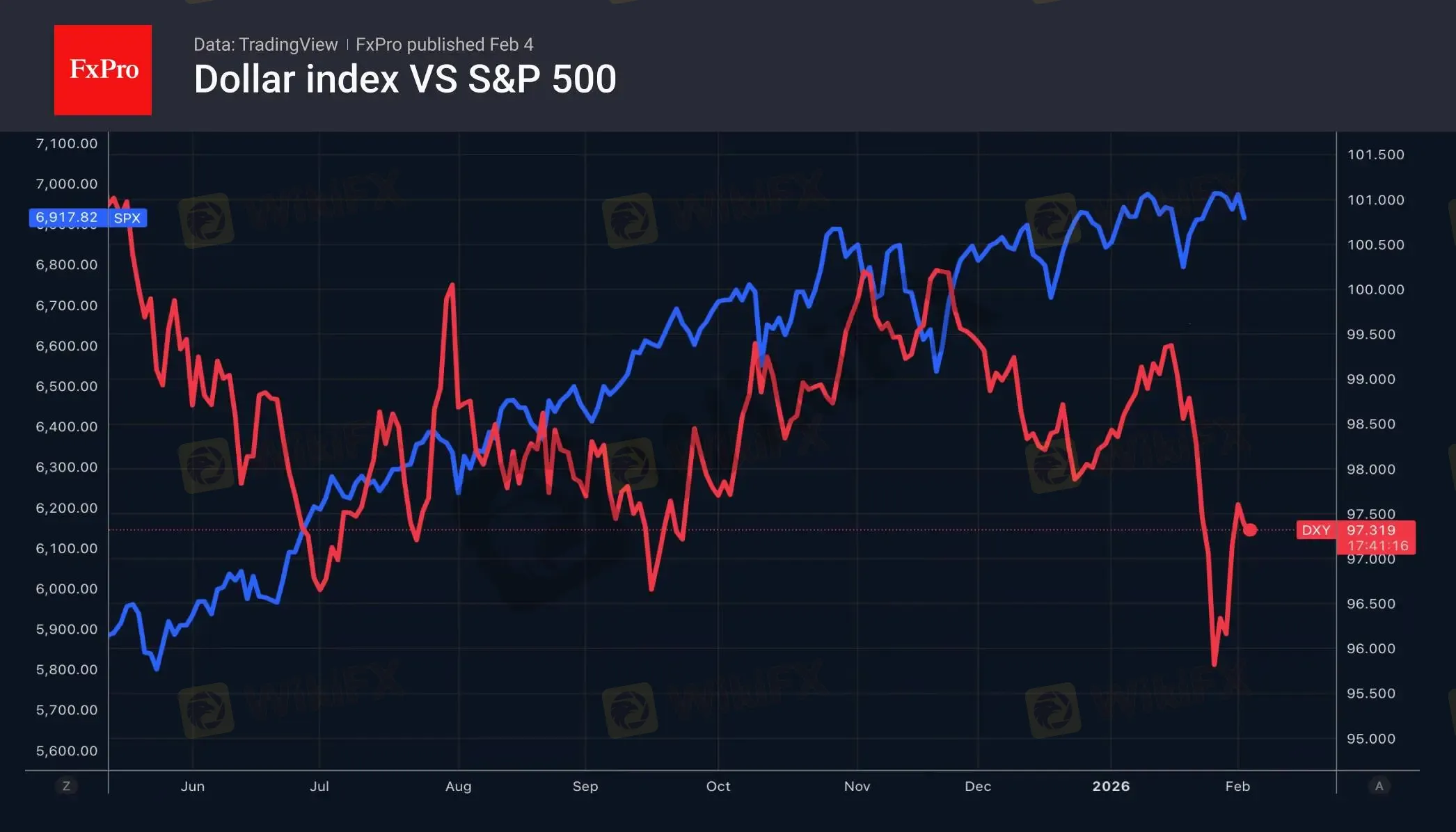 摘要:注:此文章由FxPro高级分析师Alex Kuptsikevich撰写· 黄金波动依旧剧烈· 美元可能会因为凯文・沃什承压走弱在人工智能领域新进展的冲击下,美国股指大幅下挫,导致美元走弱。受Anthropic公司创新成果的影响,软件类股票遭受重创。如今,美国市场已不再像往日那般一枝独秀,投资者倾向于分散投资组合,纷纷抛售美国股票。此外,市场对凯文·沃什(Kevin Warsh)若出任美联储主席的观