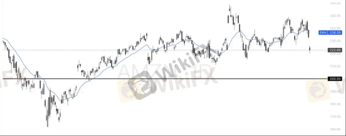 技术面显示,财报后股价盘前下跌约10%,价格已逼近 200 美元关键中期支撑区域。开盘后若能快速修复(参考谷歌财报走势)避免进一步回调,但如果开盘后无法快速修复,200美元支撑将承压(参考AMD财报走势)。