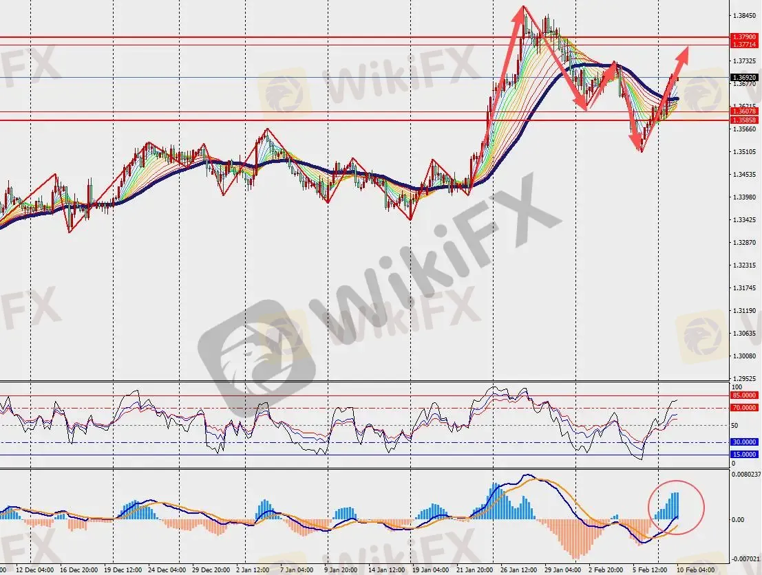 第一阻力位:1.3750 第一支撑位:1.3640