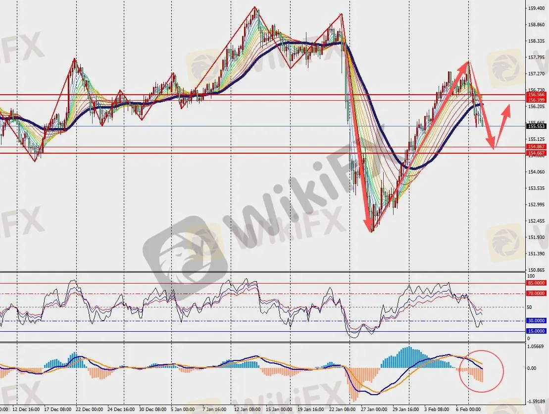 第一阻力位:156.30 第一支撑位:154.70