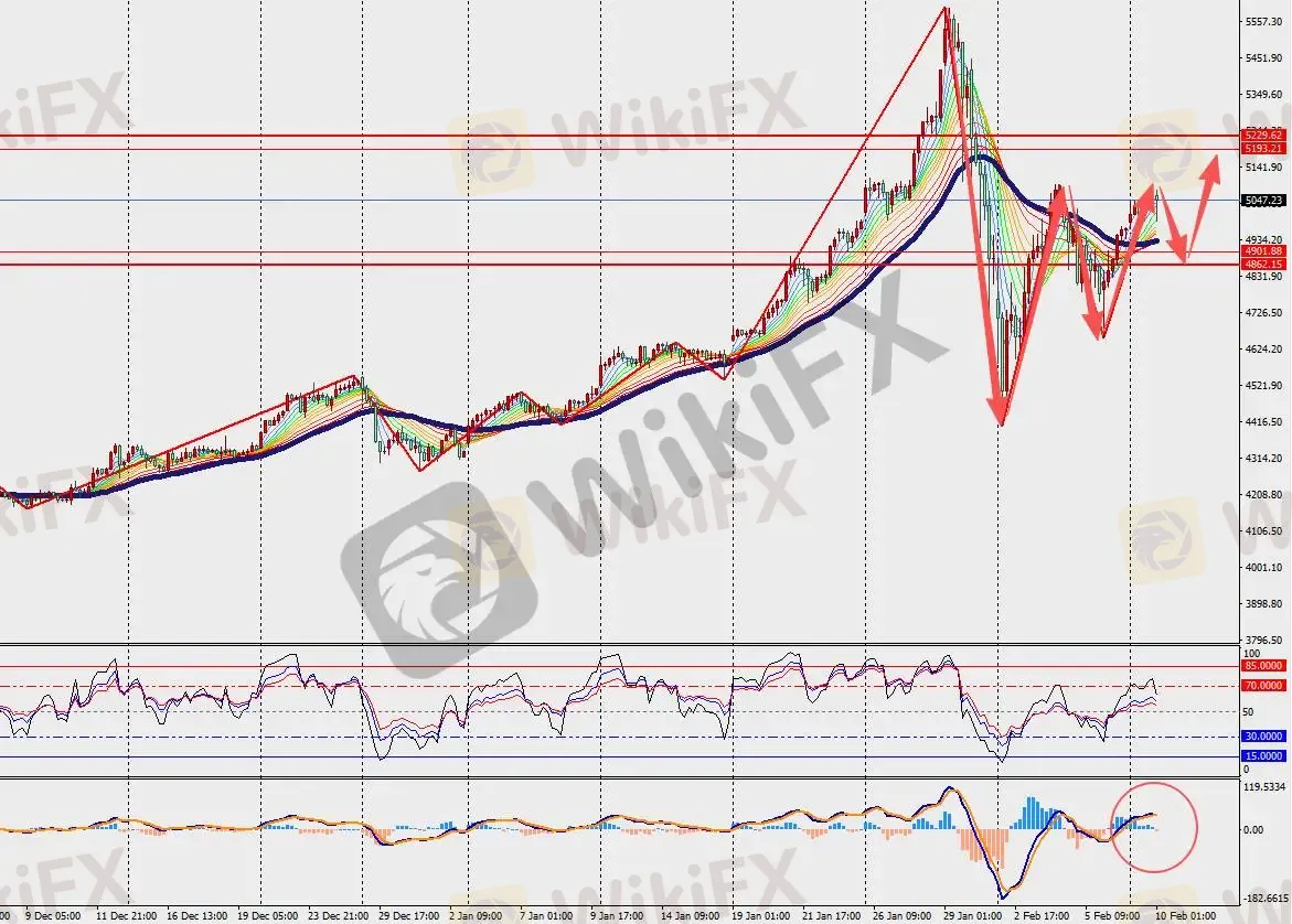第一阻力位:5070.00 第一支撑位:5030.00