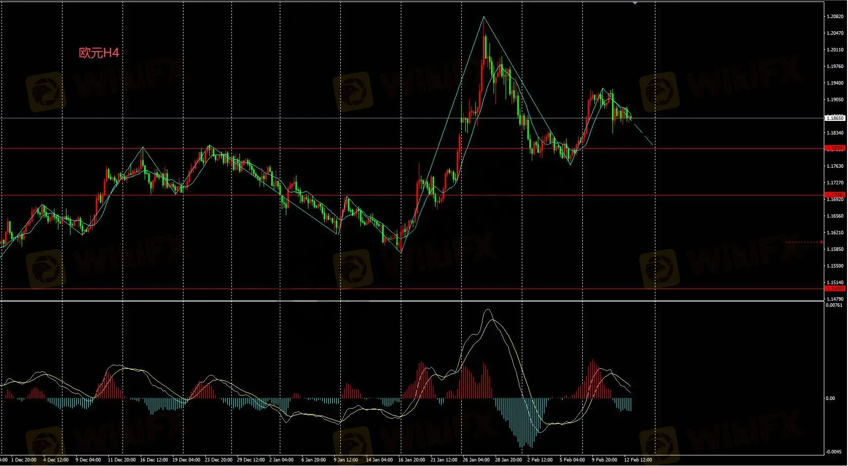 H4图表汇价若受阻于1.19则,可能回落至1.185。