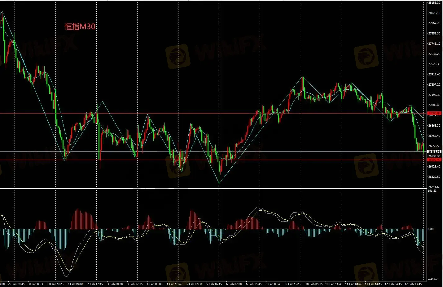 恒生指数震荡后再次回落至27000关口下方,短线多头态势结束,日内持续看空。