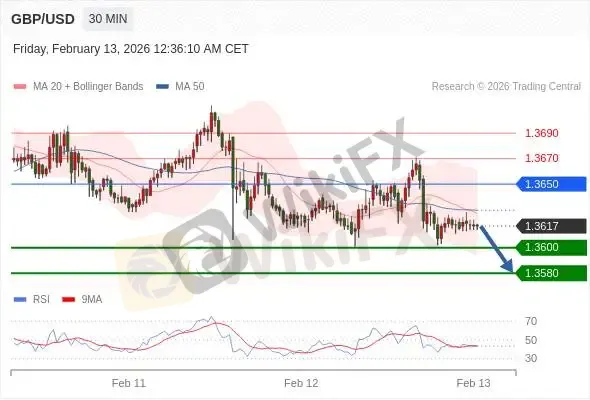 交易策略: 在 1.3650 之下,看跌,目标价位为 1.3600 ,然后为 1.3580。