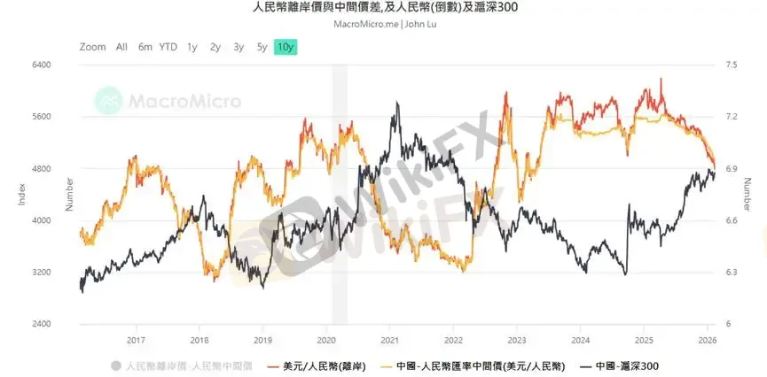 (图二、美元/人民币、沪深300;资料来源:M平方)